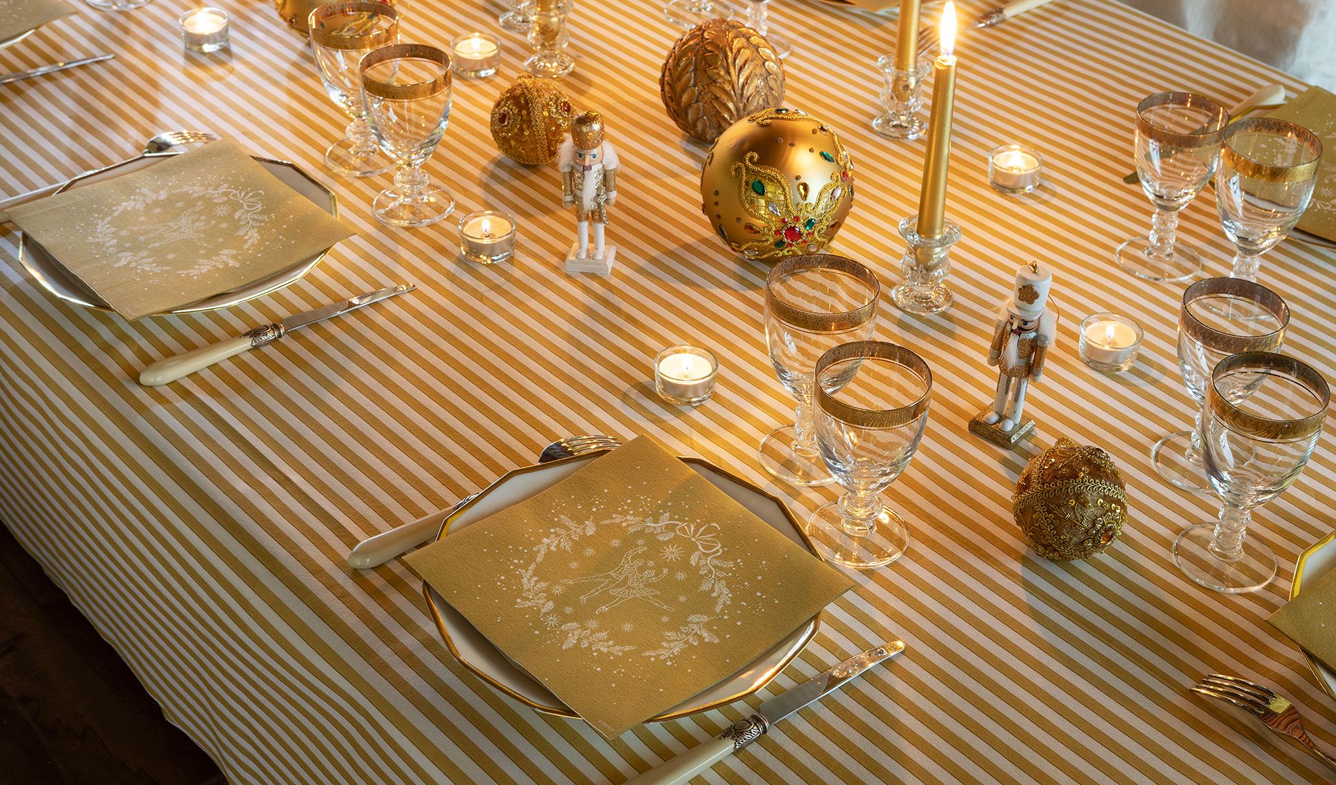 There are several collections that match different occasions. A simple, yet elegant way of using disposable fabric-like table cloth products for the art of the table settings. Discover our tablecloths, napkins and other accessories for your parties, Christmas celebrations, weddings or for more casual use at home with the "basic collection".